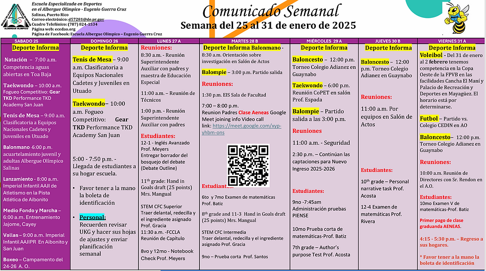 Comunicado Semanal del 25 al 31 de enero de 2025